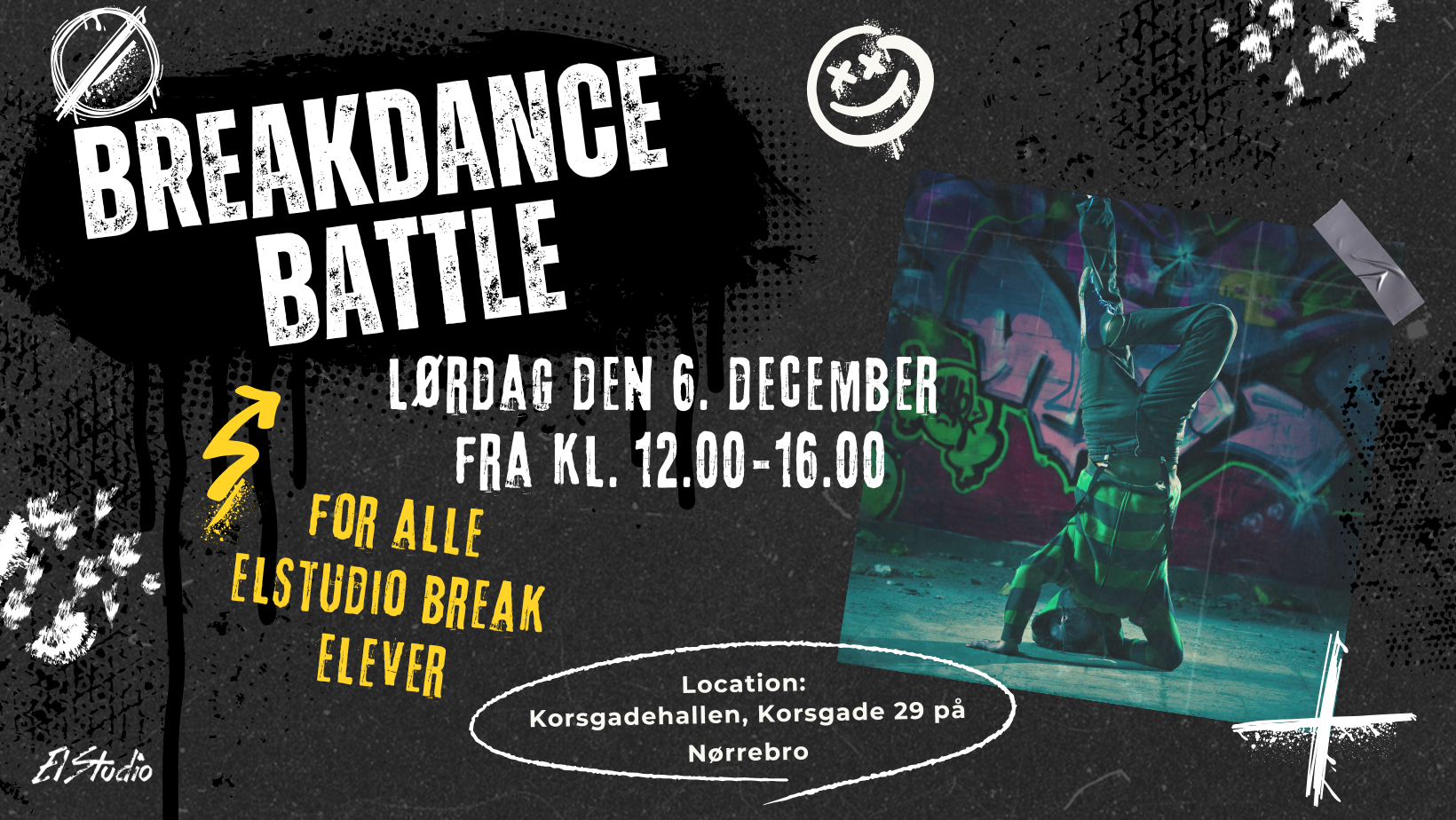 Er du klar til at vise et par af dine moves? Vores B-boy/B-girl Battle for Børn og Teens er den perfekte mulighed for at udfordre dig selv og dine breaks i et dejligt trygt fællesskab på en super sjov måde. Vores skønne Breakdance instruktører Ib, Frida og Simon, vil være til stede under hele eventet og guide alle. (Daniel er i Japan til VM)